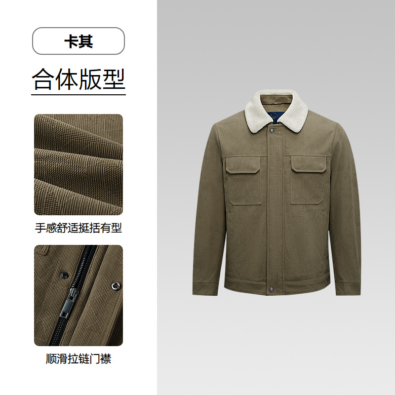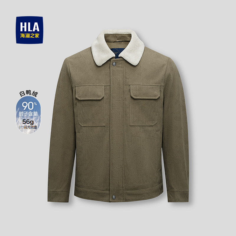 HLA海澜之家拉链门襟羽绒服25秋冬新款翻领可拆卸毛领保暖外套男HWRAD4J161A