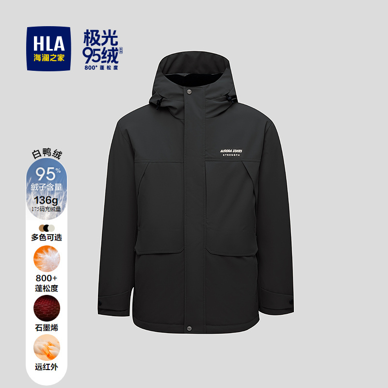 HLA海澜之家极光九五绒羽绒服25秋冬新连帽远红外抗静电外套男HWRAD4J185A