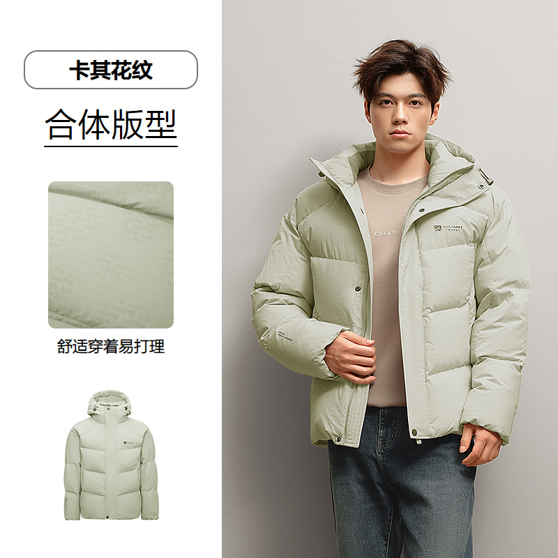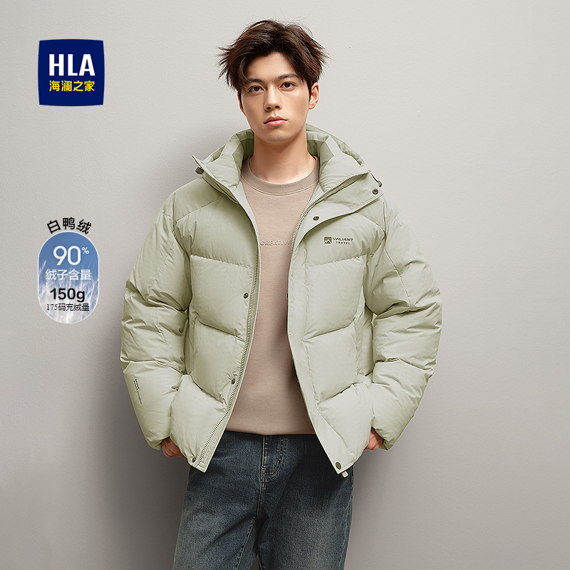 HLA海澜之家连帽羽绒服25秋冬新舒适保暖蓬松鸭绒时尚满印外套男HWRAD4J189A