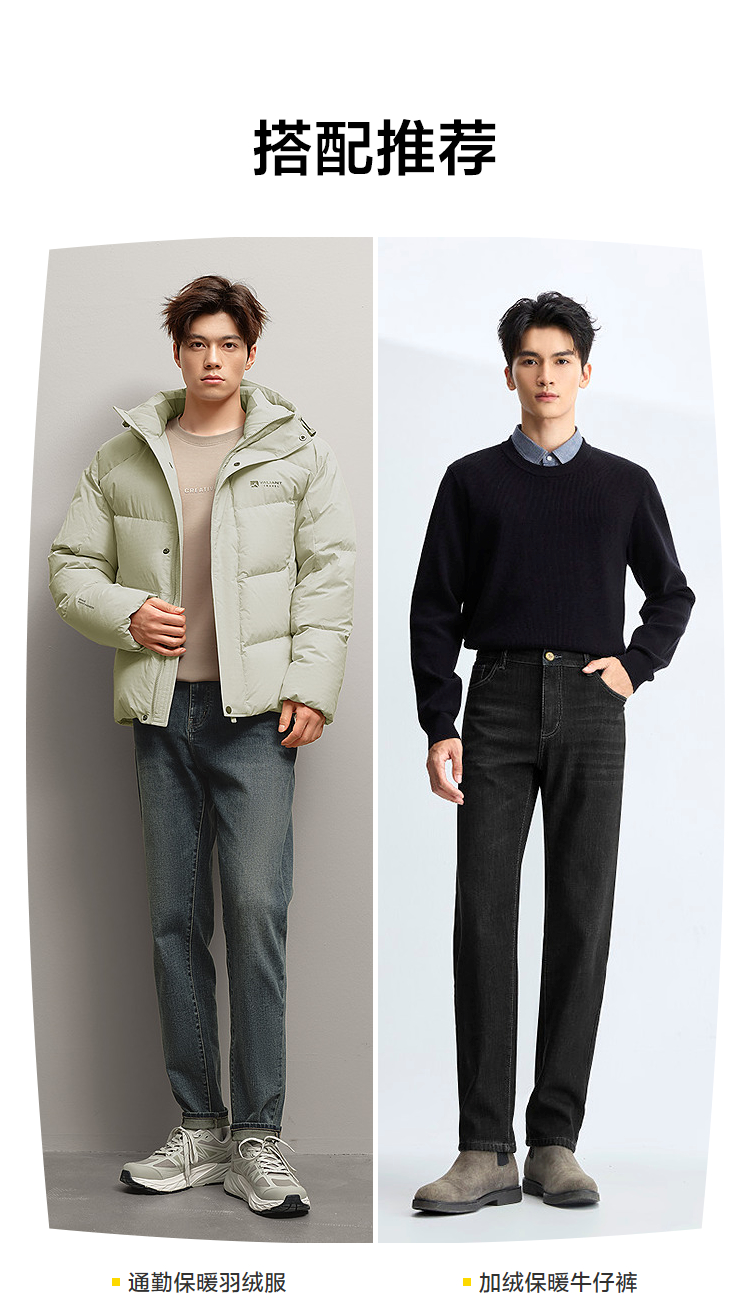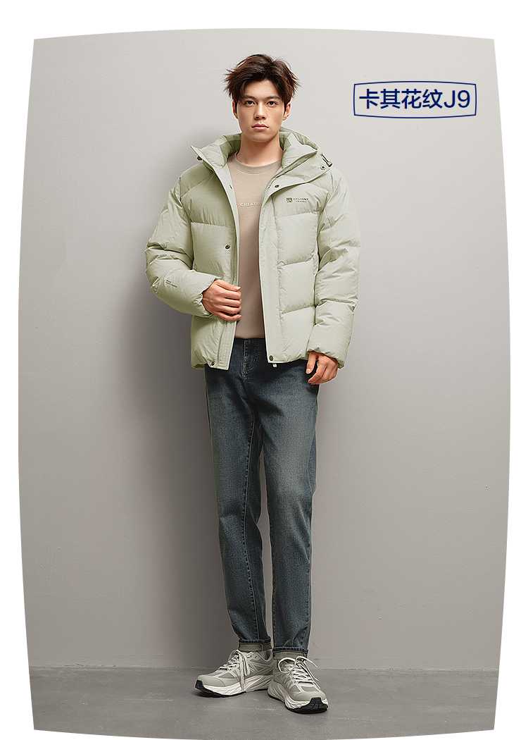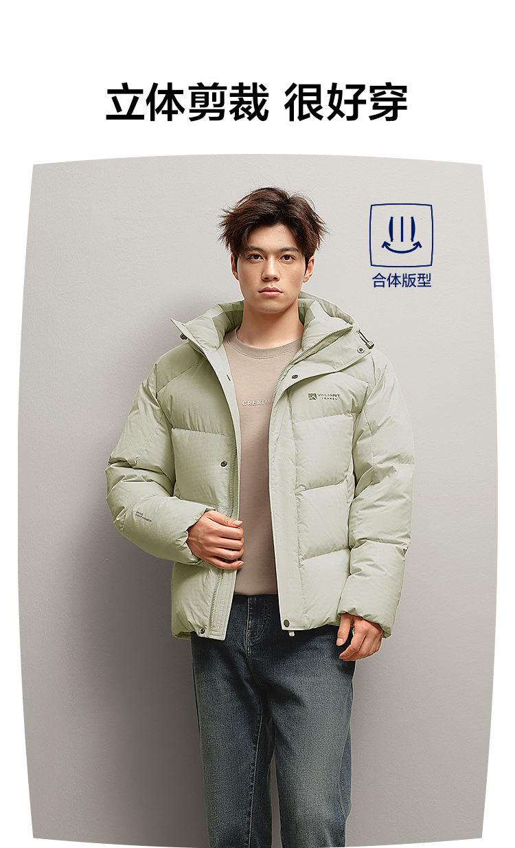 HLA海澜之家连帽羽绒服25秋冬新舒适保暖蓬松鸭绒时尚满印外套男HWRAD4J189A