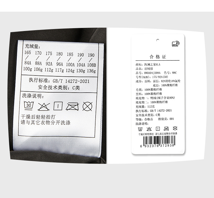 HLA海澜之家可脱卸领羽绒服2025秋冬新保暖鸭绒字母印花外套男HWRAD4J208A
