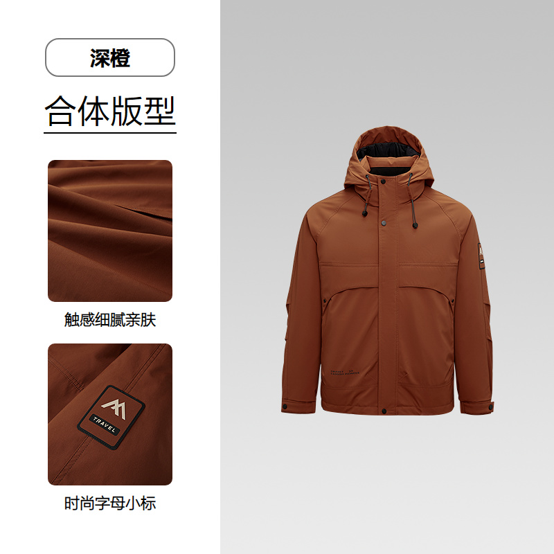 HLA海澜之家保暖鸭绒羽绒服25秋冬新抽绳连帽撞色字母通勤外套男HWRAD4J216A