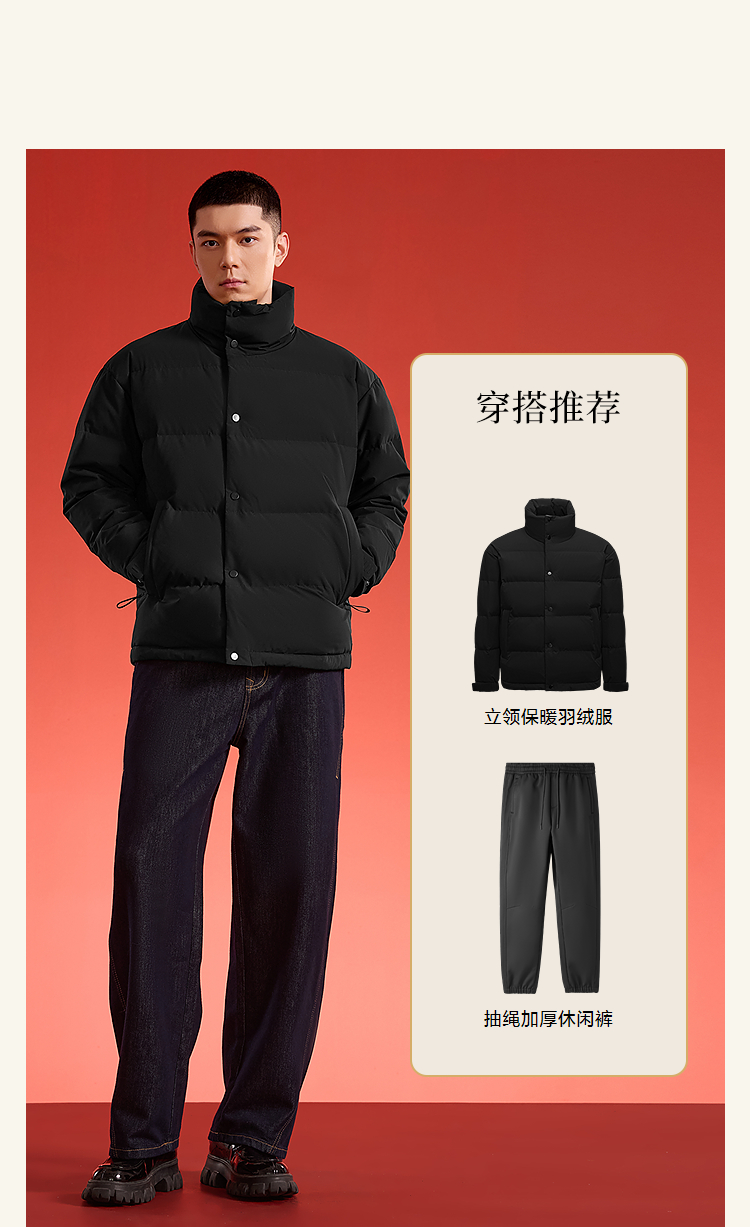HLA海澜之家马年贺岁系列羽绒服25秋冬新拉链门襟立领大码外套男HWRAW4J051A