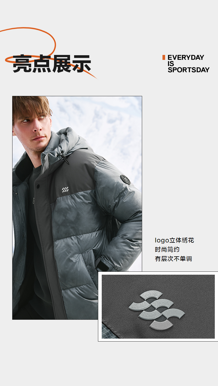 HLA海澜之家运动sportsday羽绒服25秋冬新连帽保暖鸭绒外套男HWRAW4J067A