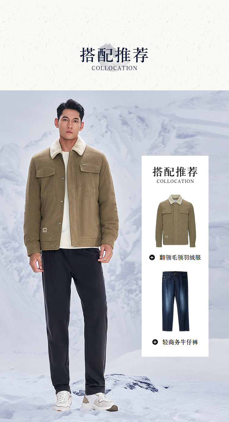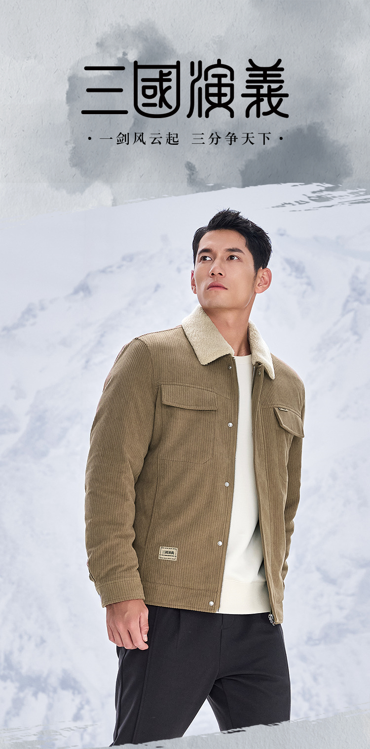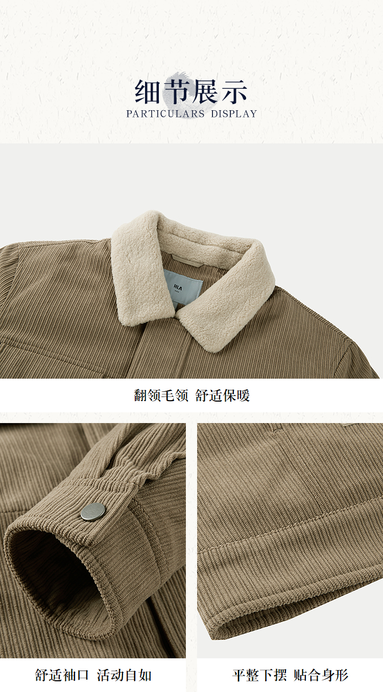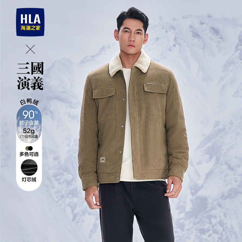 HLA海澜之家三国演义羽绒服25秋冬新款毛领灯芯绒保暖鸭绒外套男HWRAW4J073A