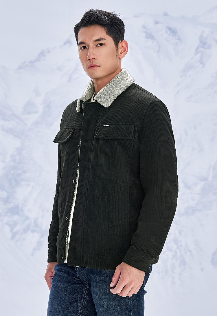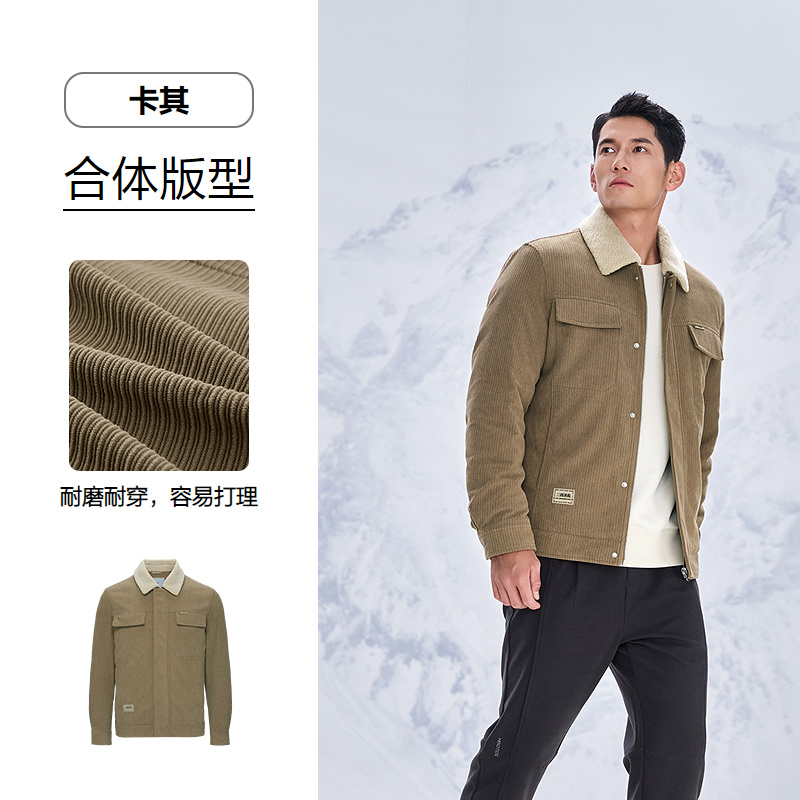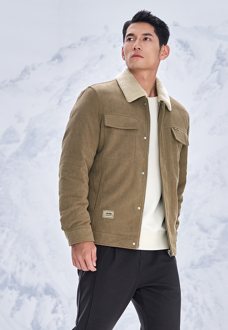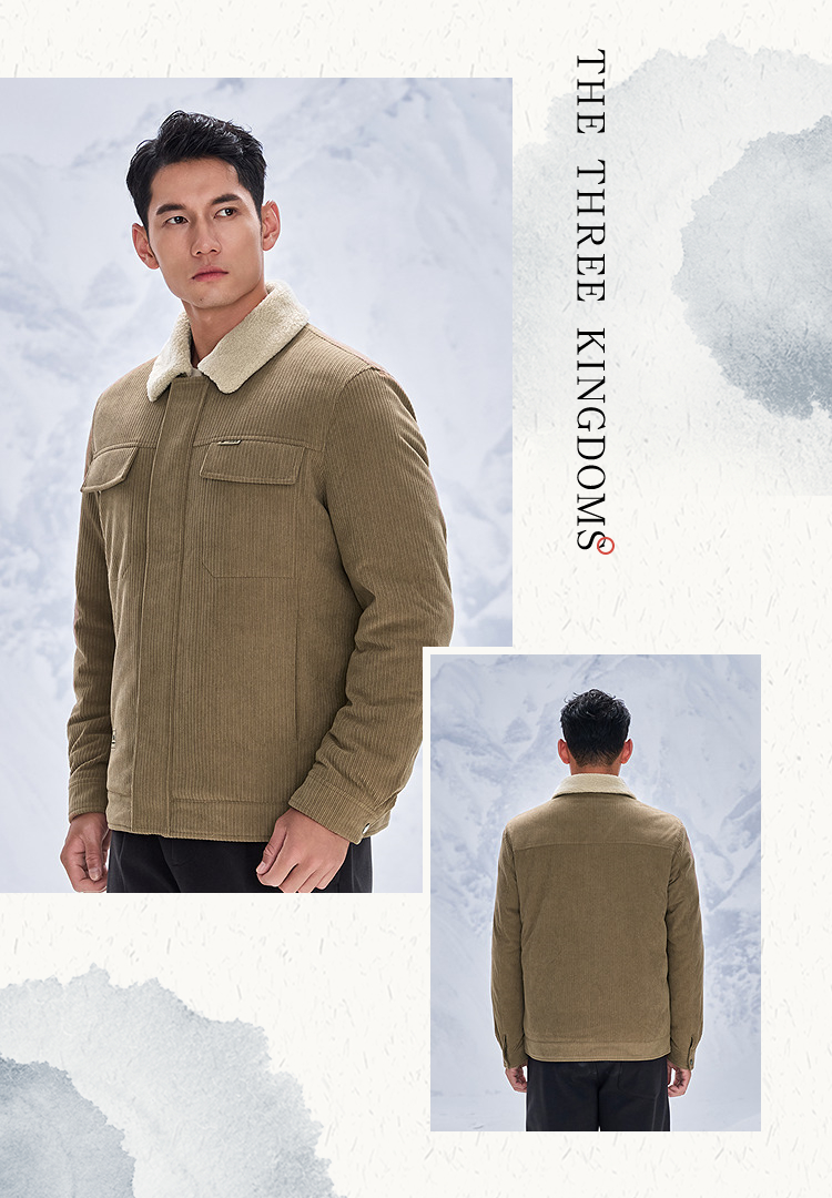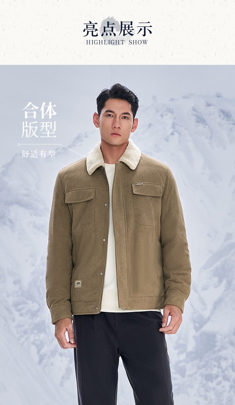 HLA海澜之家三国演义羽绒服25秋冬新款毛领灯芯绒保暖鸭绒外套男HWRAW4J073A