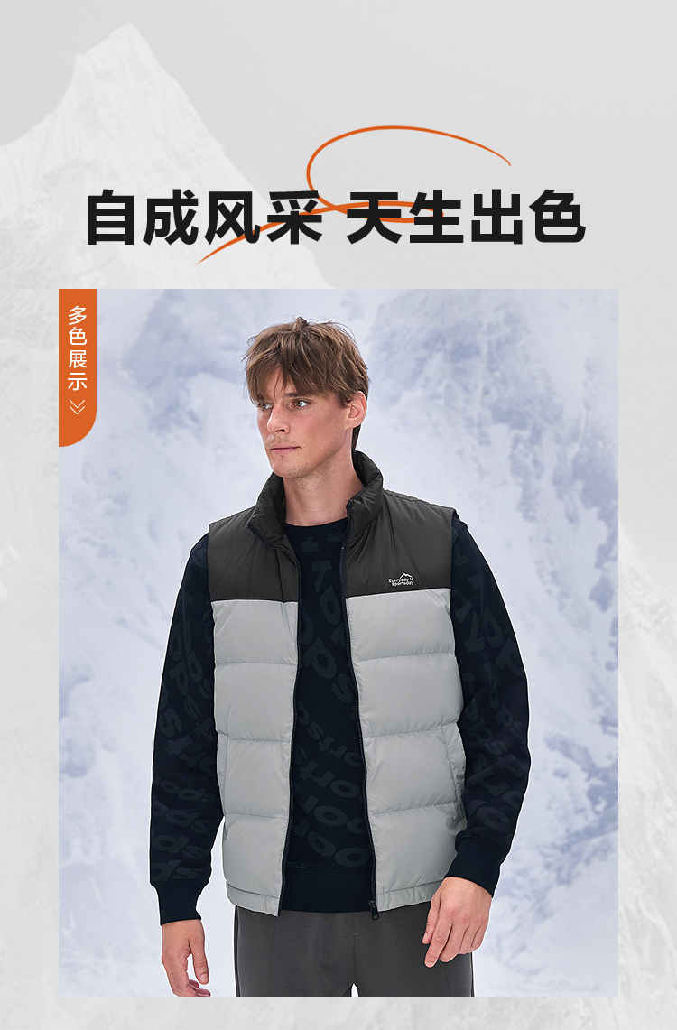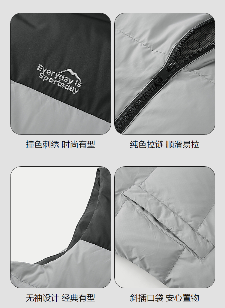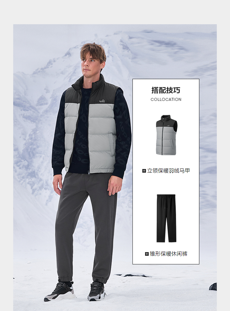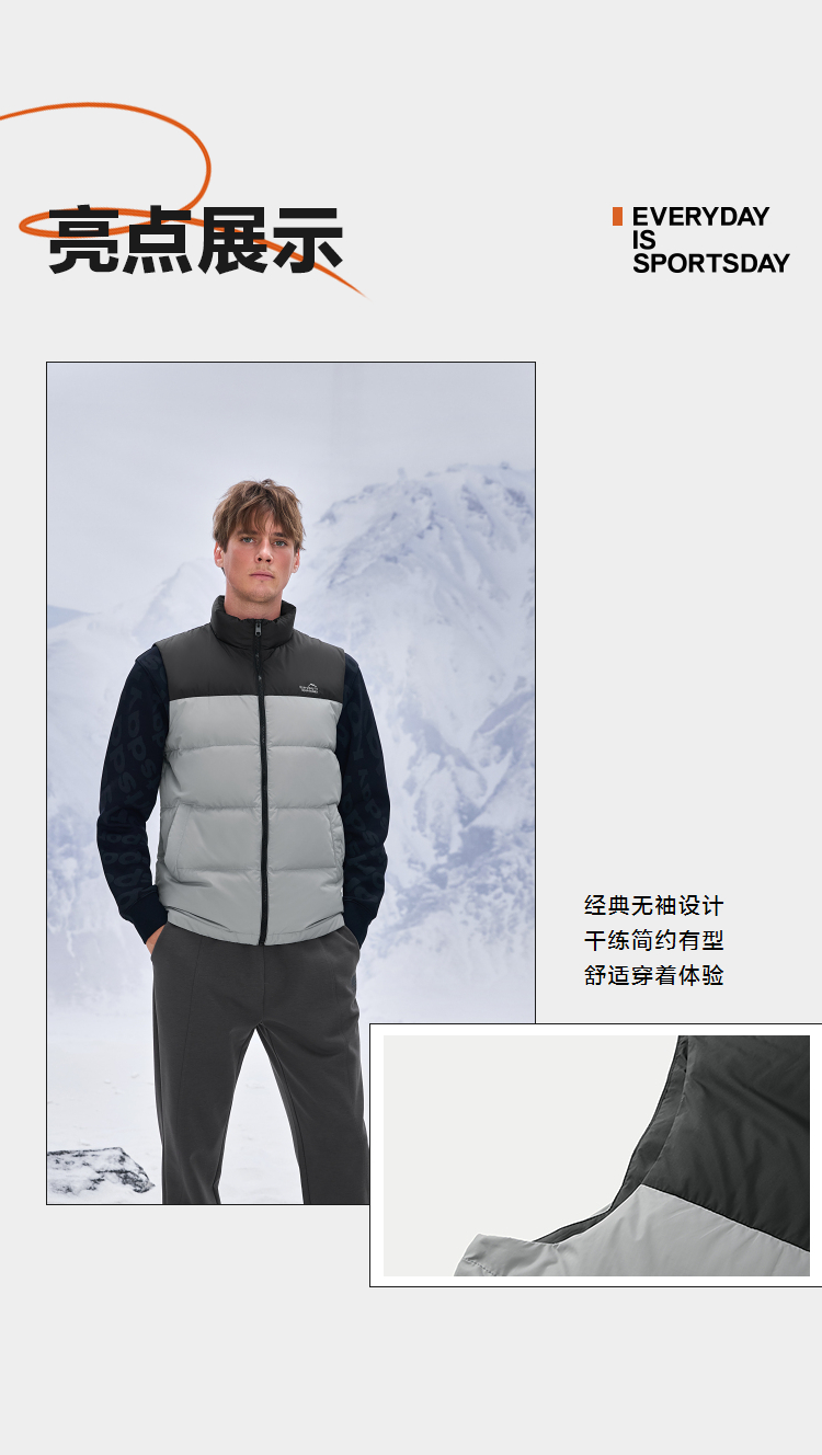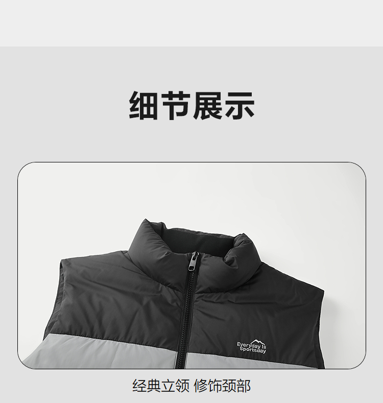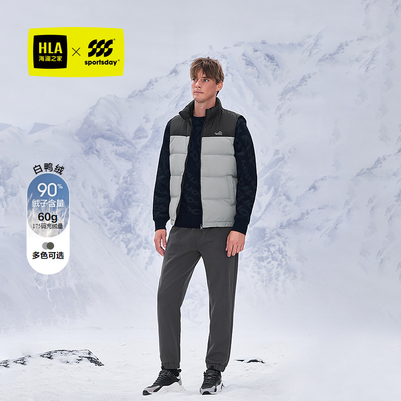 HLA海澜之家运动sportsday羽绒马甲25秋冬新保暖立领撞色外套男HWRBW4J001A