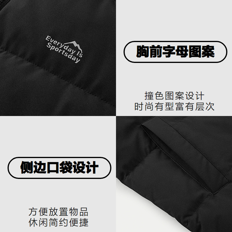 HLA海澜之家运动sportsday羽绒马甲2025秋冬新款立领保暖外套男HWRBW4J002A