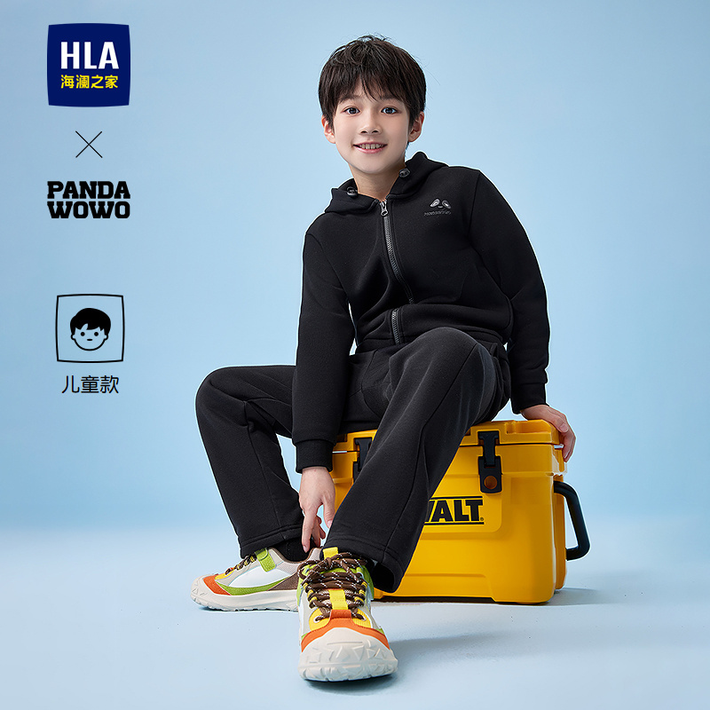 HLA海澜之家panda wowo熊猫针织开衫25秋新连帽绣花外套男女童装HWZAW3J012A