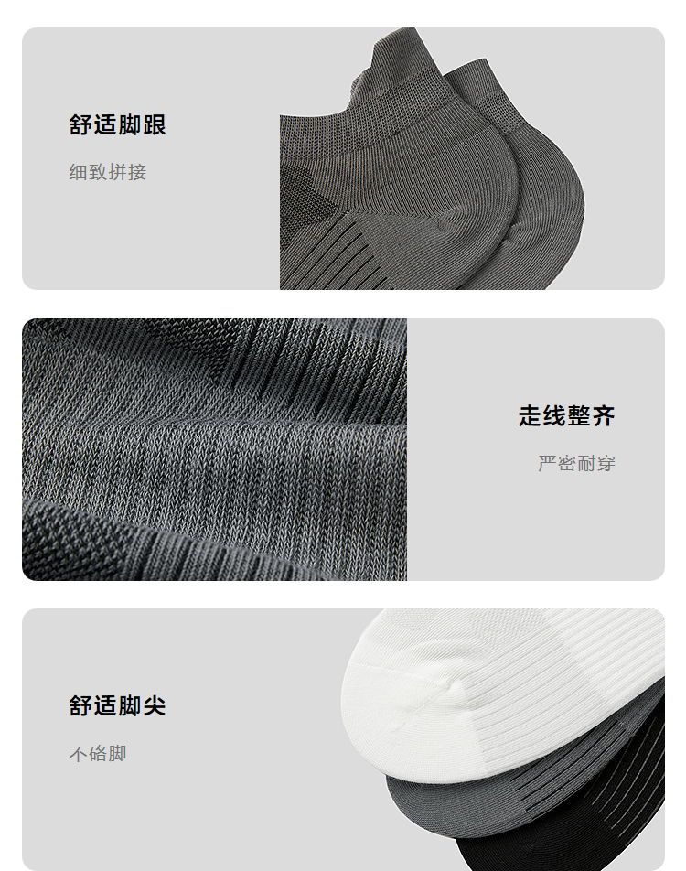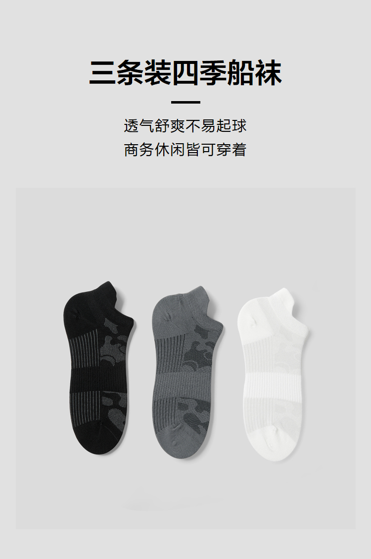 HLA海澜之家四季袜子26新三双装透气舒爽柔软细腻简约时尚船袜男HZACJ5F031A