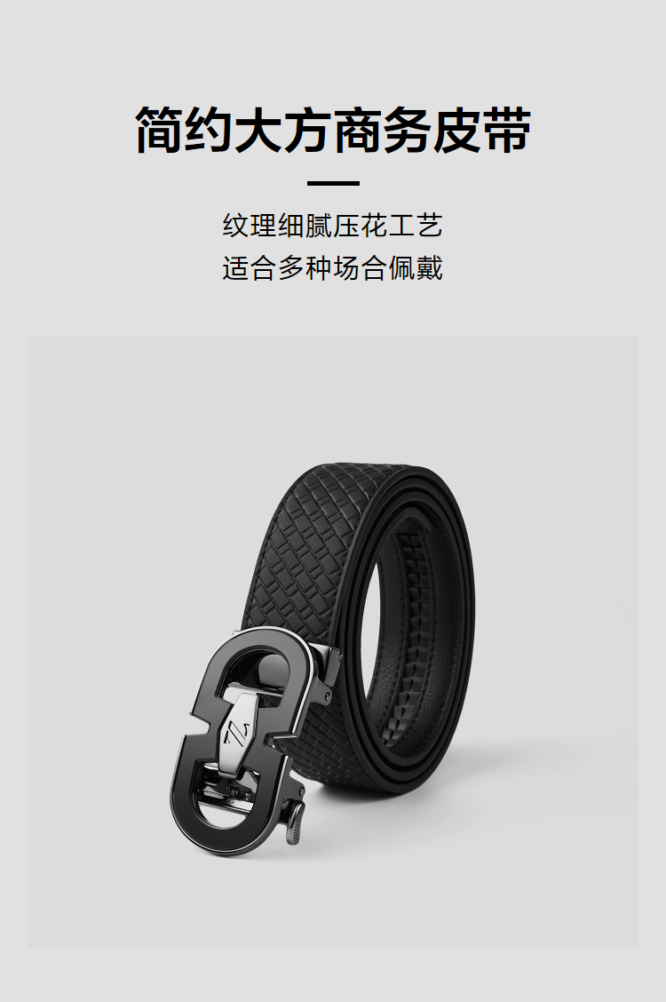 HLA海澜之家商务大气自动扣皮带2026新款压花工艺合金头腰带男HZPAD5F009A