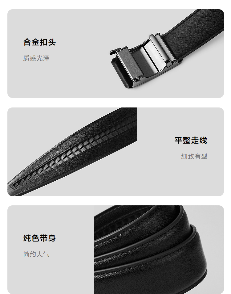 HLA海澜之家纯色光泽皮带26新自动扣合金扣头商务绅士纯色腰带男HZPAD5F020A