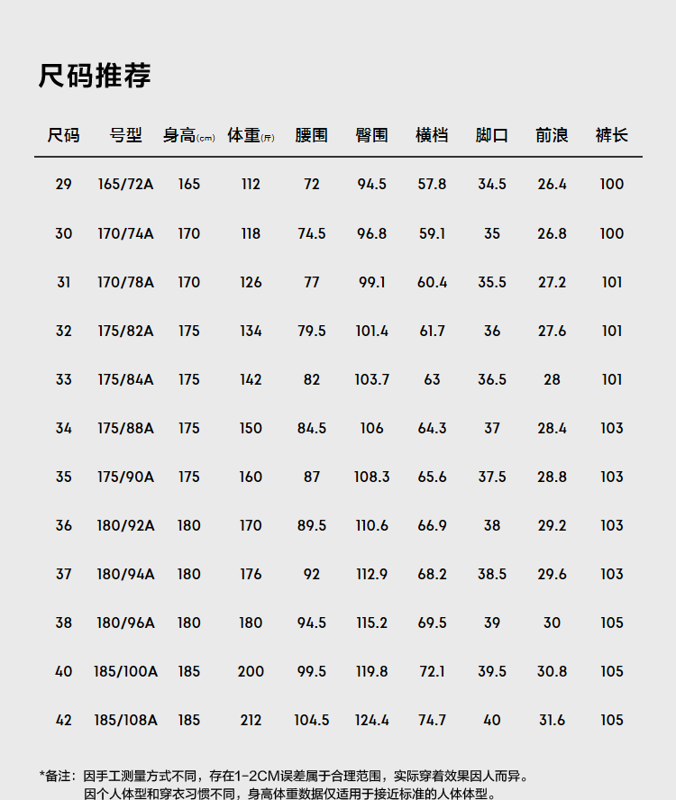 尺码颜色