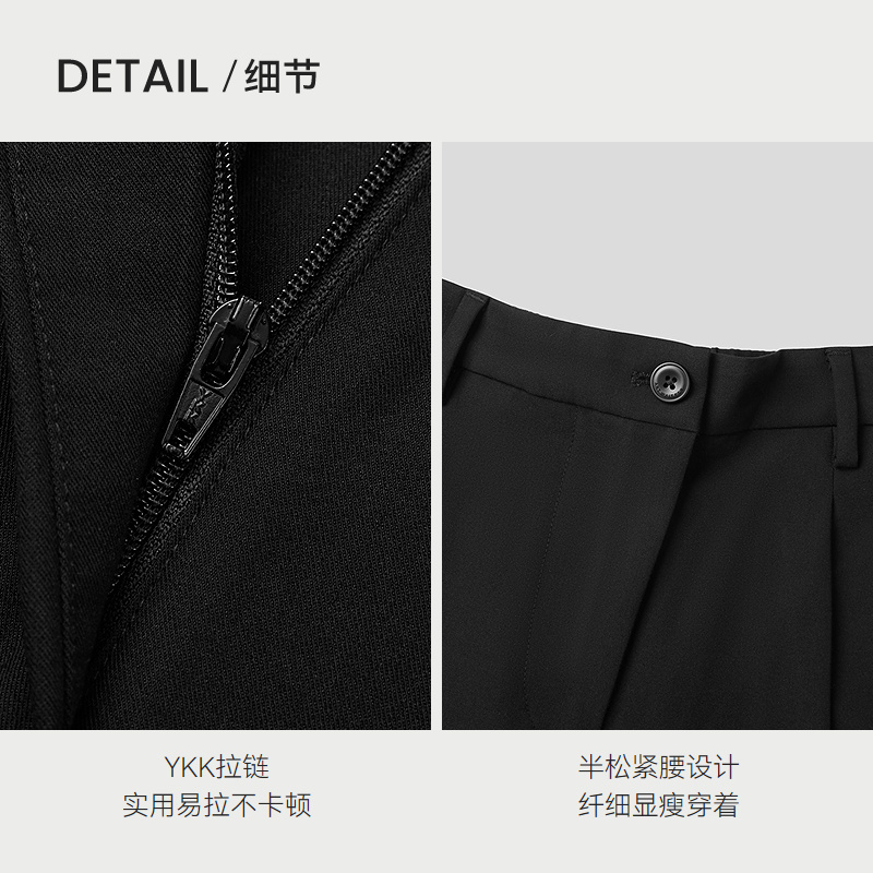 HLA海澜之家休闲裤2026春夏新款通勤宽松半松紧腰阔腿裤子女装HKCAW1F300A