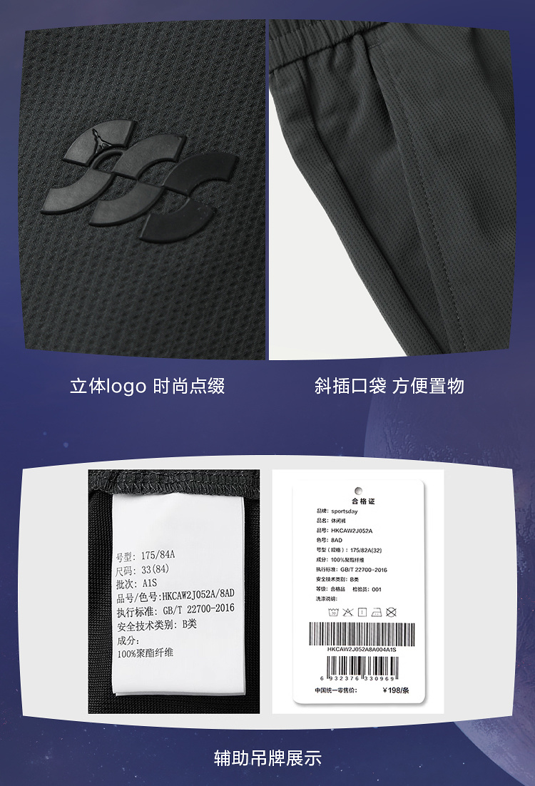 - HLA海澜之家运动sportsday休闲裤25春夏新三体联名系列九分裤男HKCAW2J052A