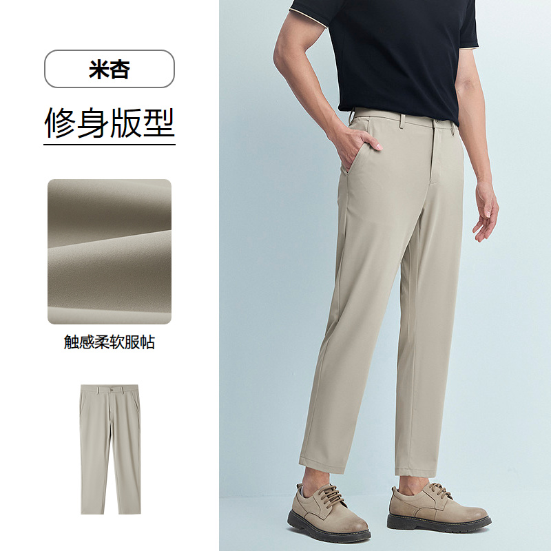 - HLA海澜之家轻商务时尚系列休闲九分裤25春夏新修身弹力绣花裤男HKCAW2J070A