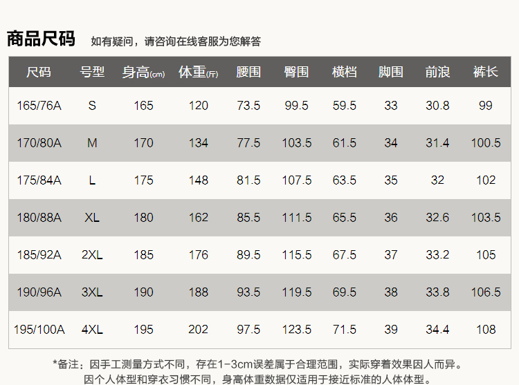 尺码颜色