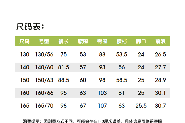 尺码颜色