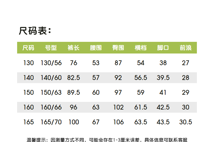 尺码颜色