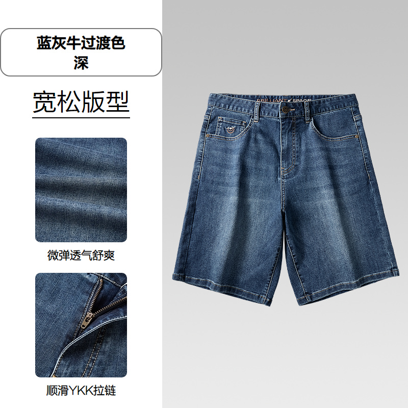- HLA海澜之家闪耀太空系列牛仔中裤26春秋新精致绣花时尚短裤子男HKMNW2F010A