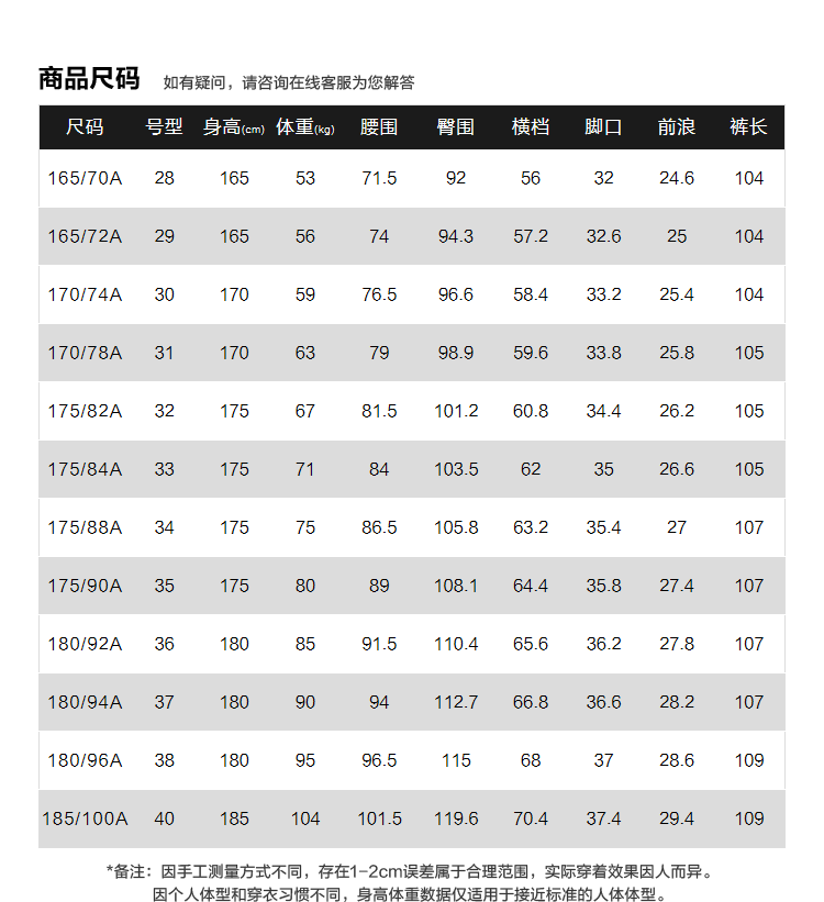 尺码颜色