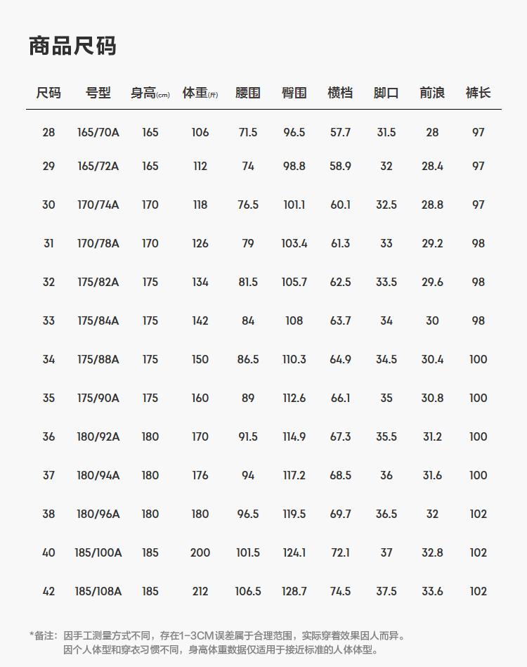 尺码颜色