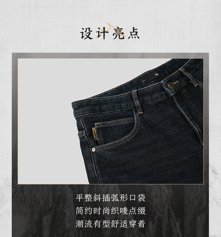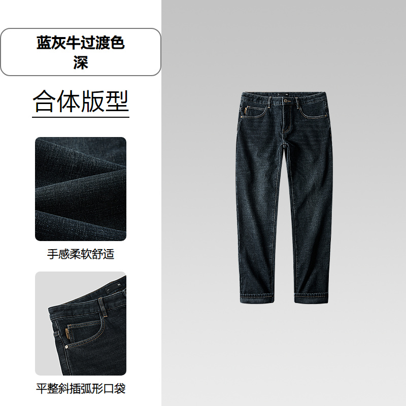 - HLA海澜之家山不在高系列牛仔裤25秋冬新微弹中腰加绒加厚裤子男HKNAW4J198A