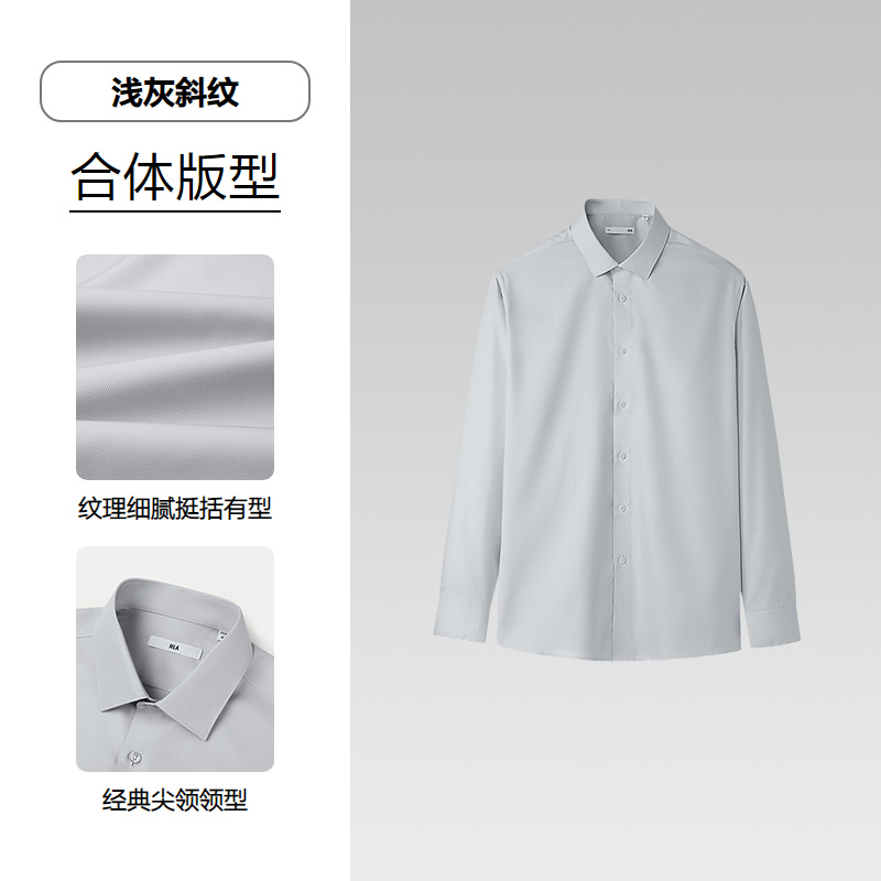 已选:HLA海澜之家斜纹长袖正装衬衫2025秋新款商务绅士尖领简约衬衣男HNCAD3J039A