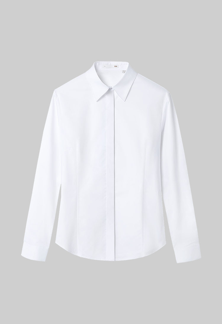 已选:HLA海澜之家三防科技长袖衬衫26春夏新纯色弹力通勤干练衬衣女装HNCAW1F303A