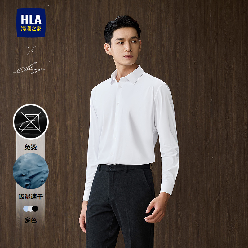 已选:HLA海澜之家轻商务衫及系列长袖正装衬衫2025春夏新款速干衬衣男HNCAW3J024A