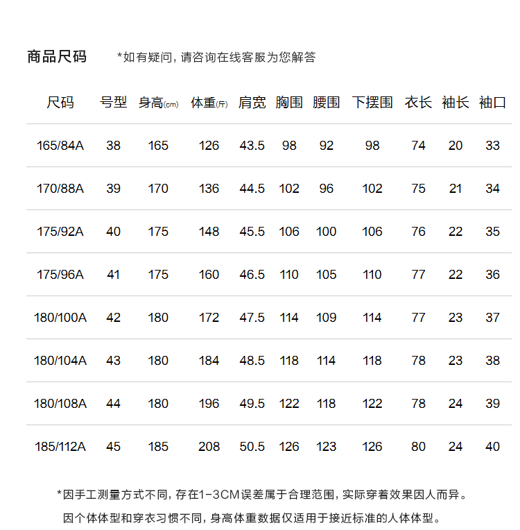 尺码颜色