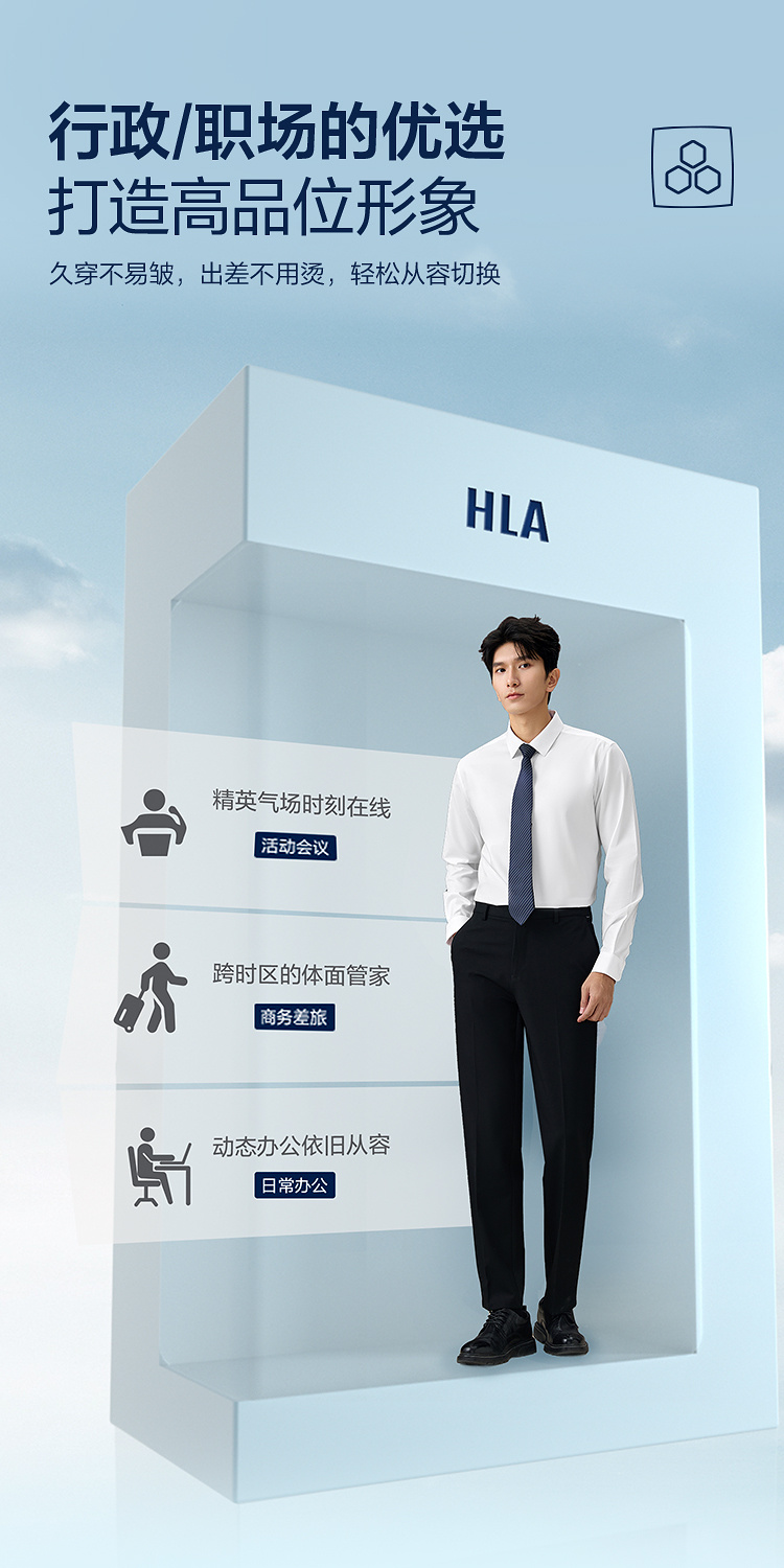 - HLA海澜之家领昂行政衬衫长袖衬衫25秋季新DP免烫L5机洗版衬衣男HNCGW3J037A