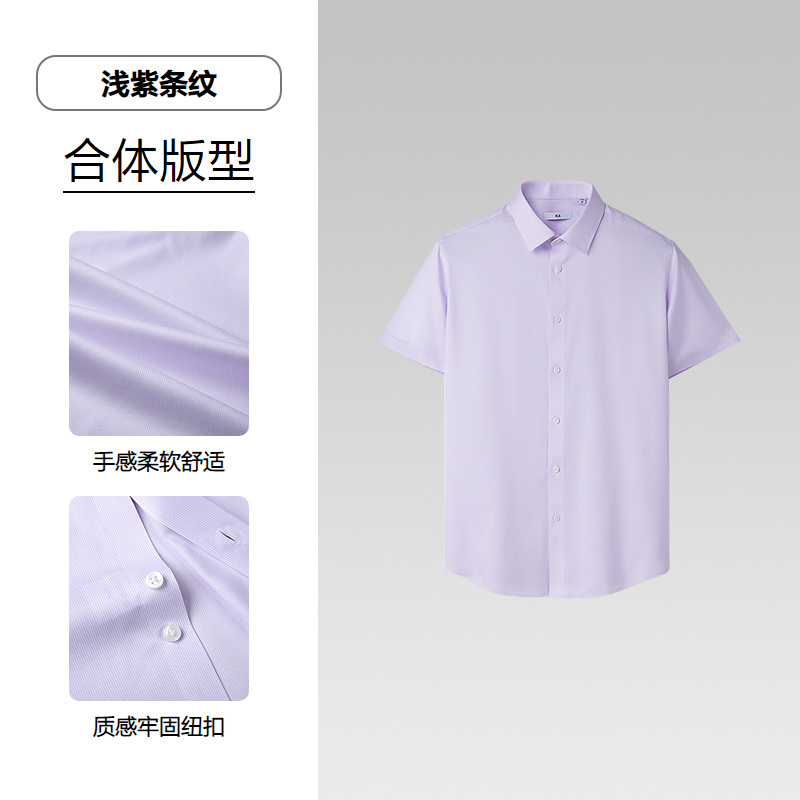 已选:HLA海澜之家条纹短袖正装衬衫2025春夏新款尖领DP免烫正装衬衣男HNCHD2J024A