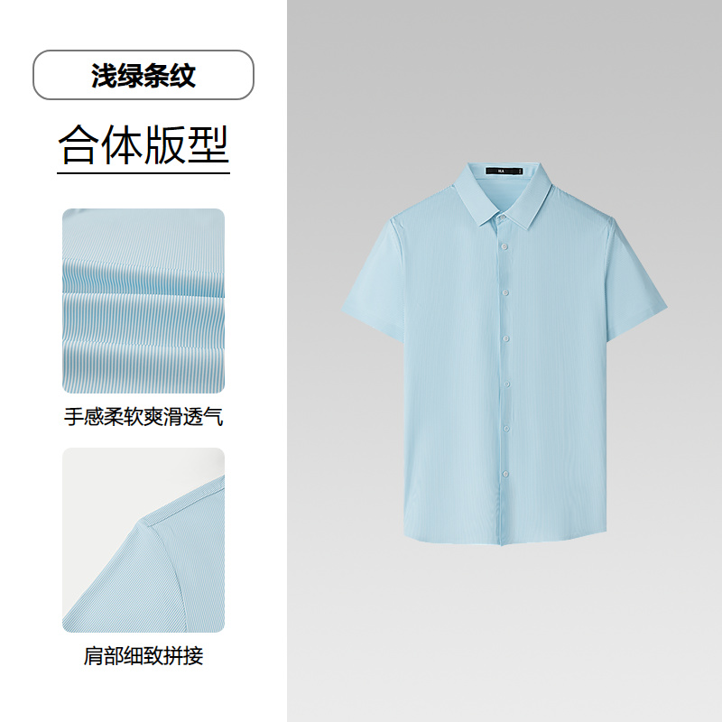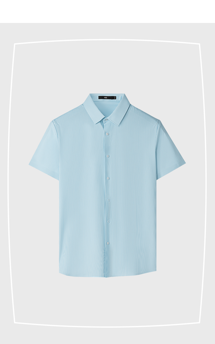 HLA海澜之家无痕热压短袖针织衬衫25春夏新条纹凉感弹力短衬男HNDCD2J002A