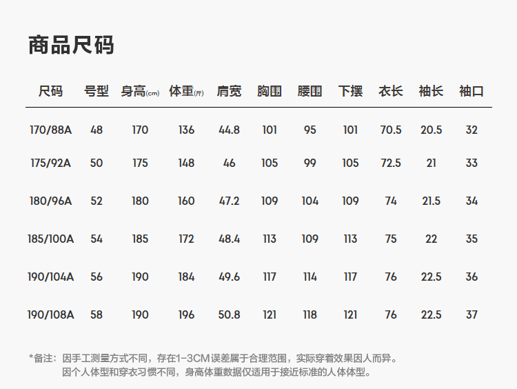 尺码颜色