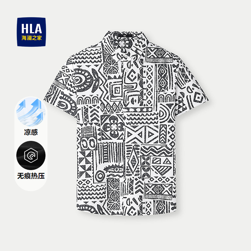 已选:HLA海澜之家无痕热压短袖针织衬衫25春夏新花纹凉感个性衬衣男HNDCD2J024A