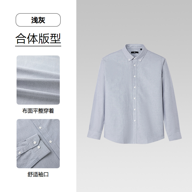 已选:HLA海澜之家纯棉牛津纺长袖休闲衬衫26春夏新扣领尖领纯色衬衣男HNEAD1F019A