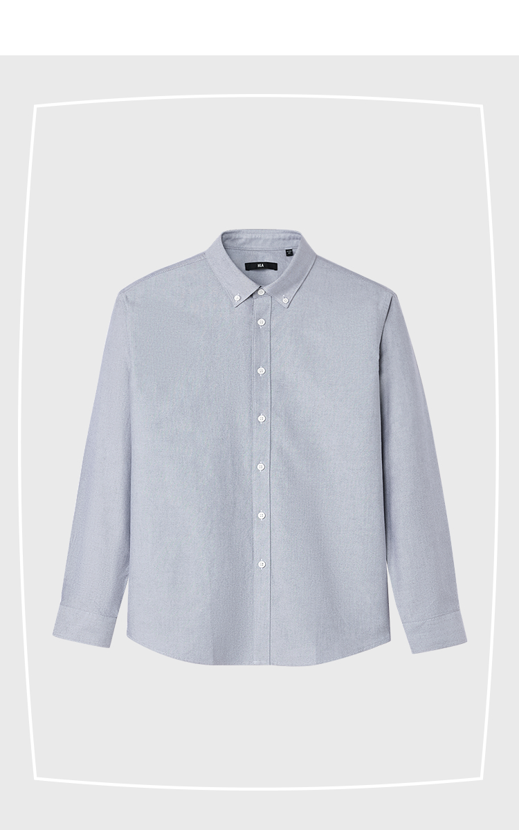 HLA海澜之家纯棉牛津纺长袖休闲衬衫26春夏新扣领尖领纯色衬衣男HNEAD1F019A