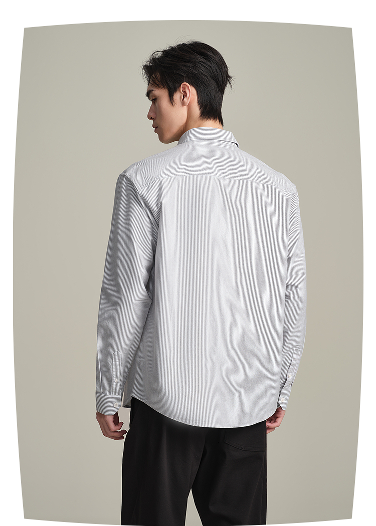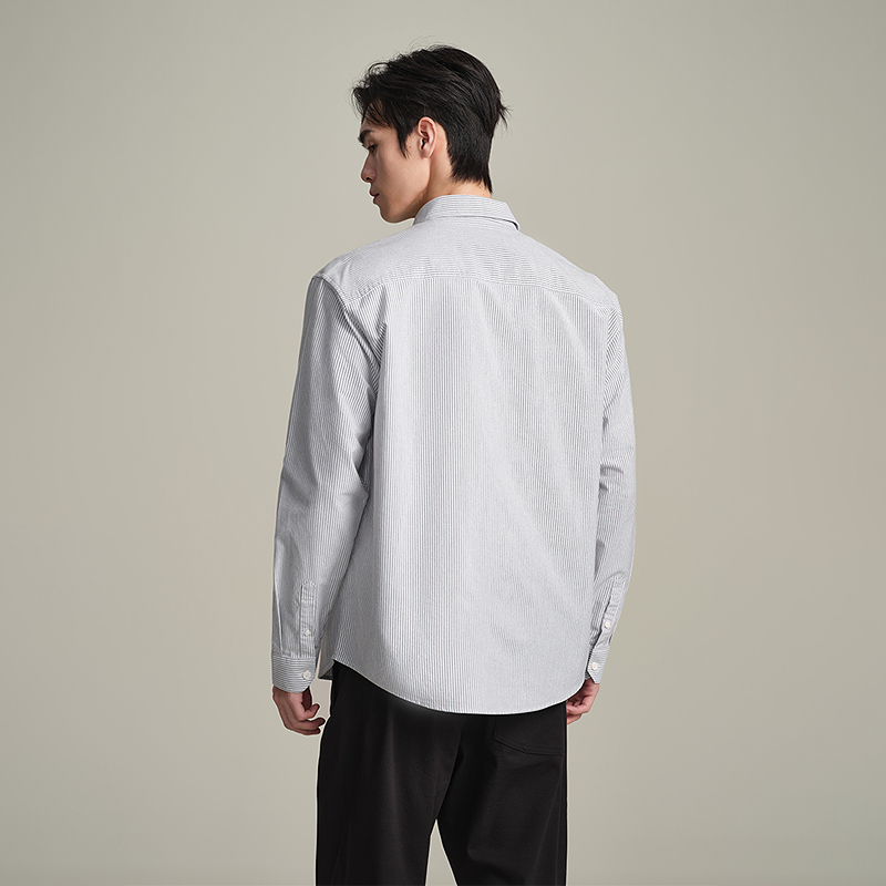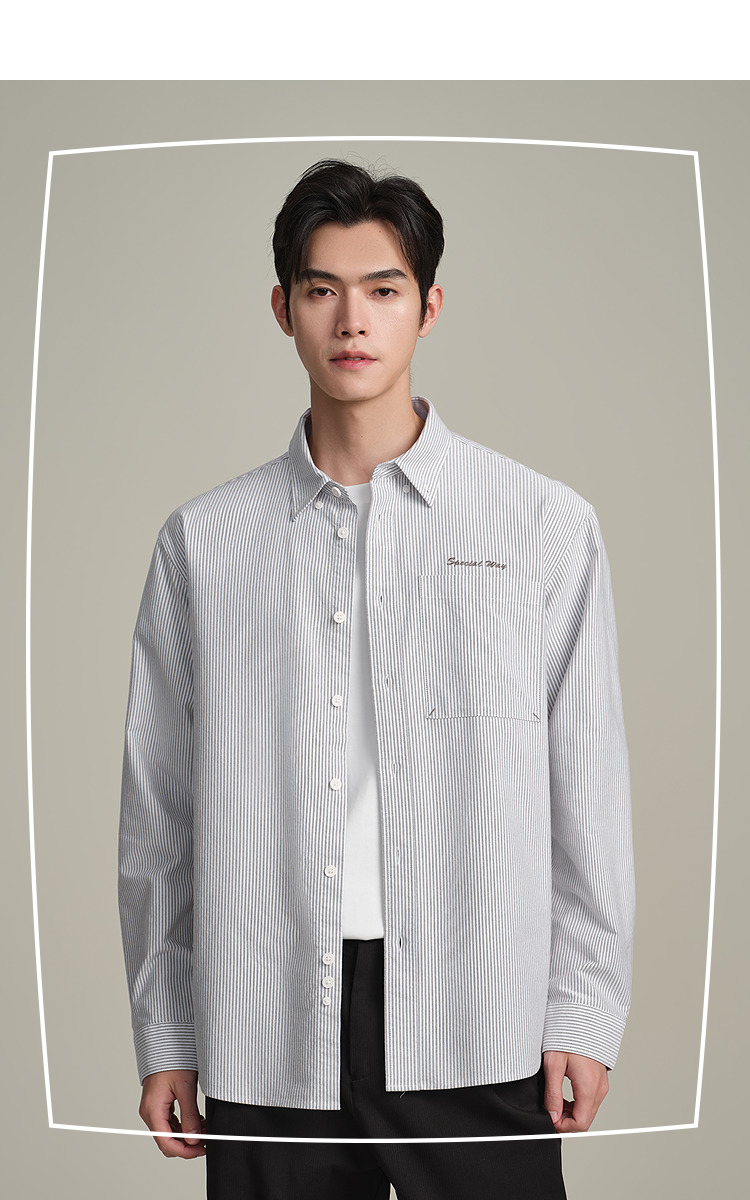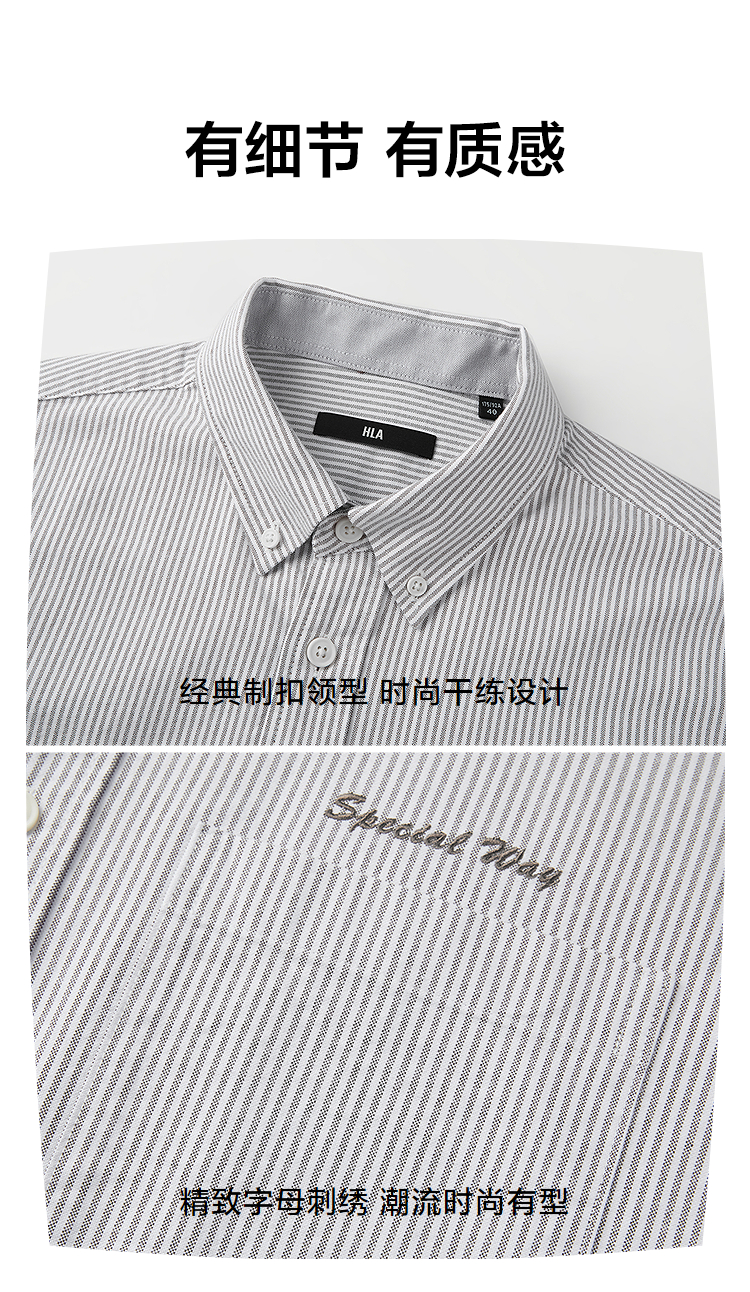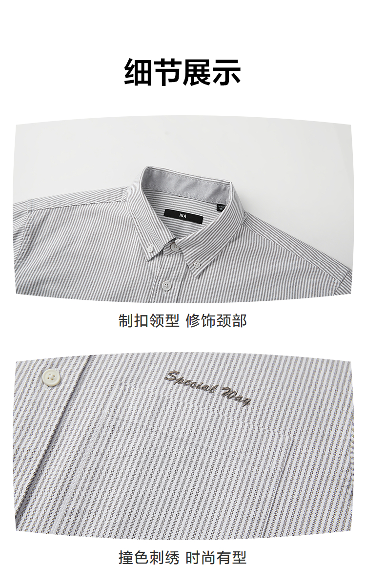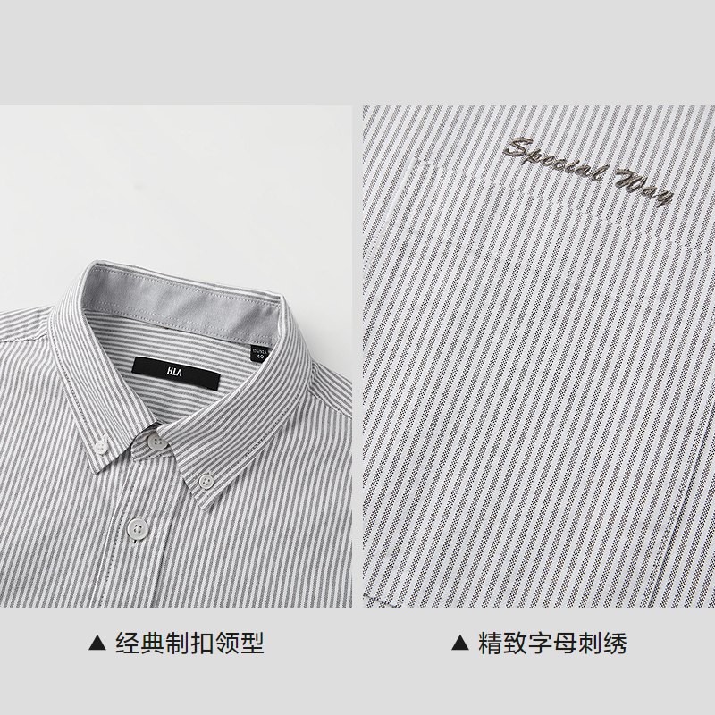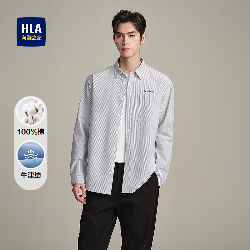 HLA海澜之家牛津纺长袖衬衫25春秋新制扣领刺绣纯棉条纹衬衣男HNEAD1J031A