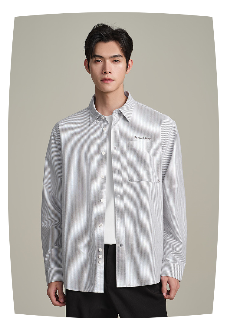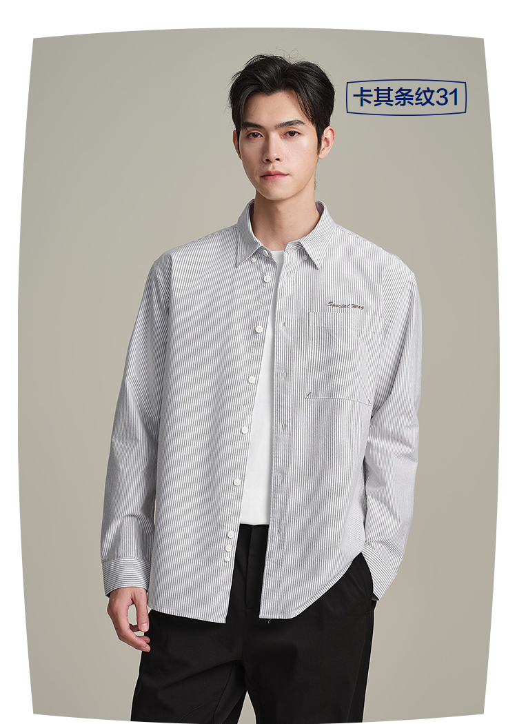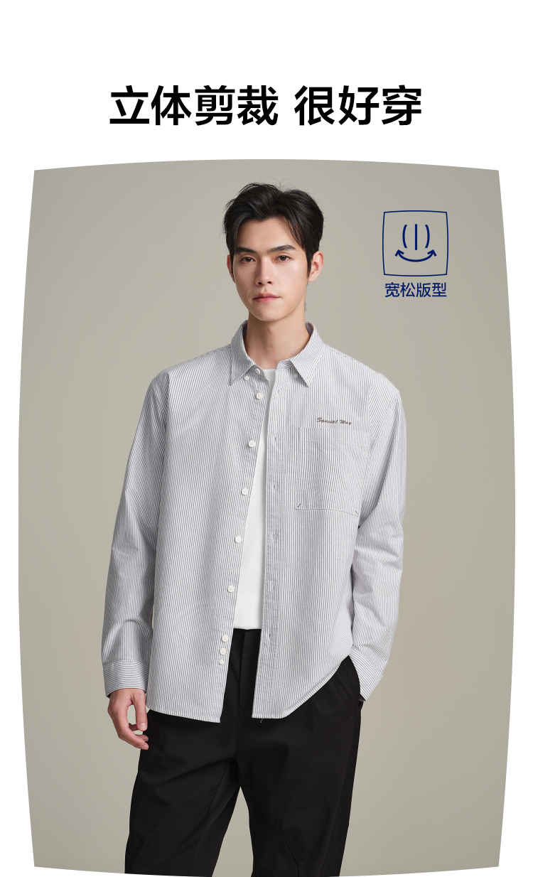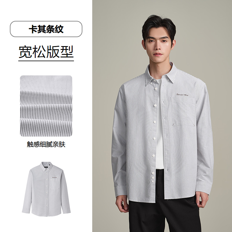 已选:HLA海澜之家牛津纺长袖衬衫25春秋新制扣领刺绣纯棉条纹衬衣男HNEAD1J031A