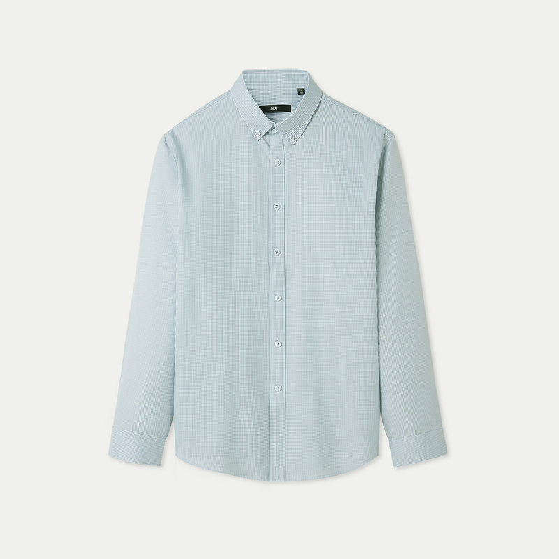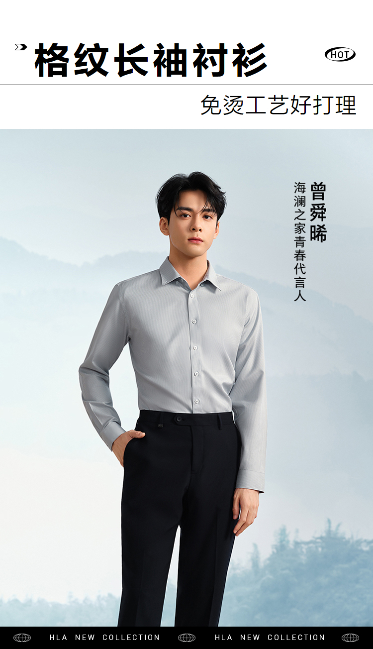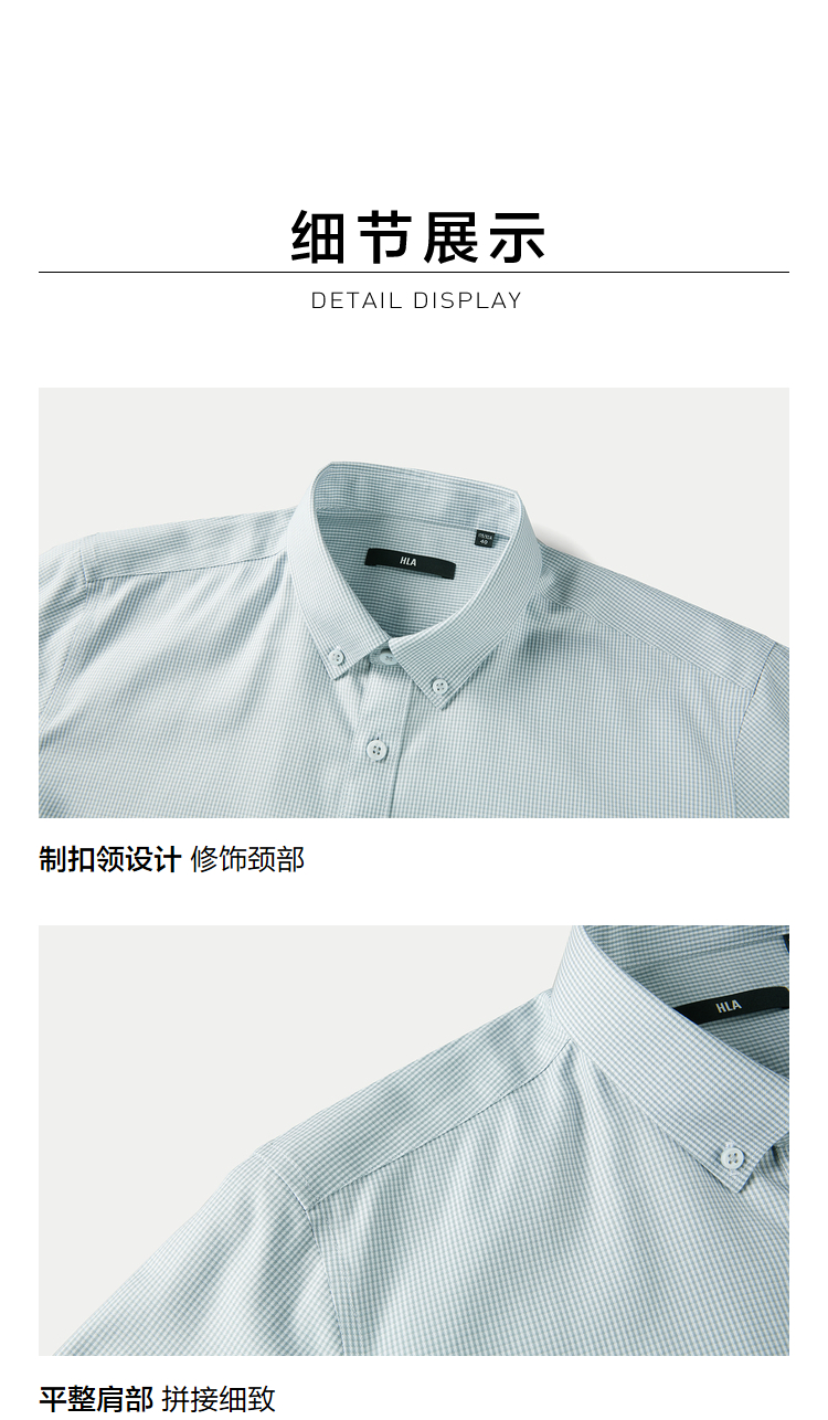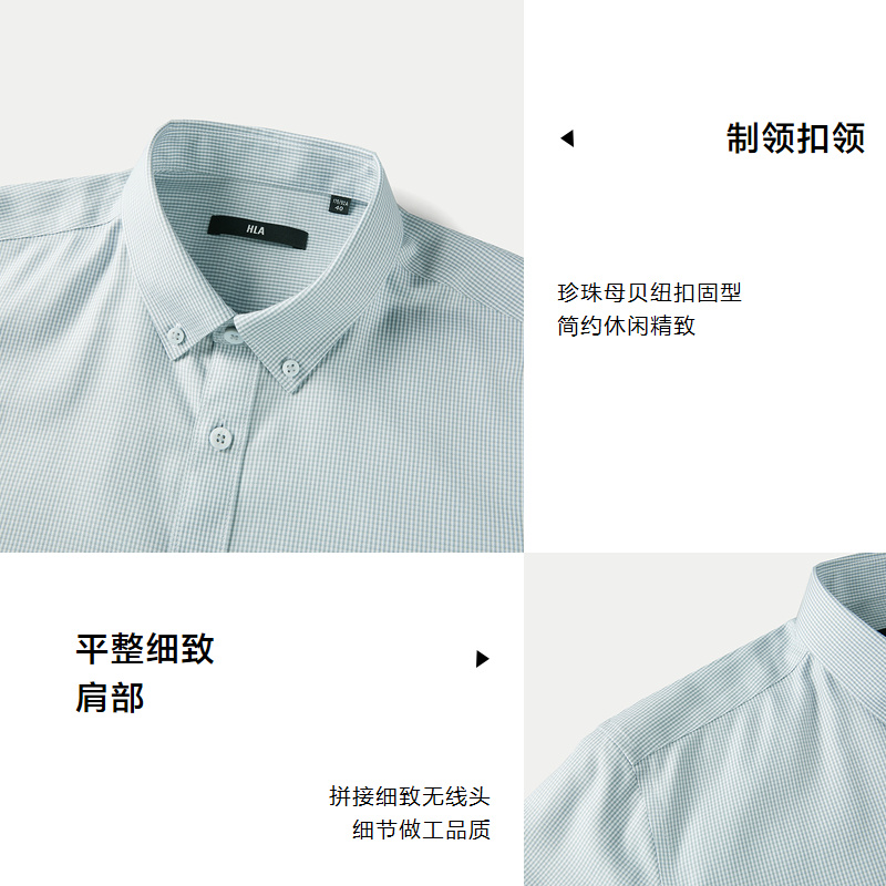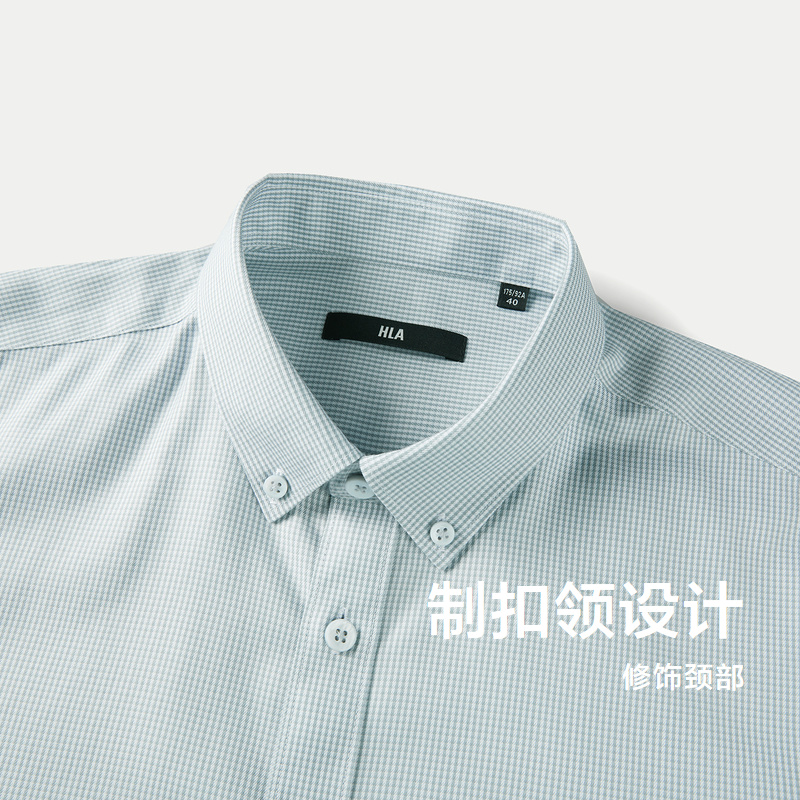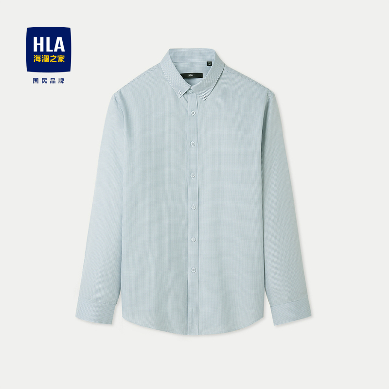 HLA海澜之家免烫纯棉长袖衬衫24春夏新制扣领时尚格纹休闲衬衣男HNEAD1W039A