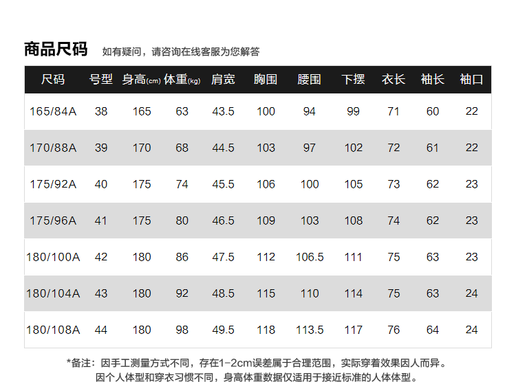 尺码颜色