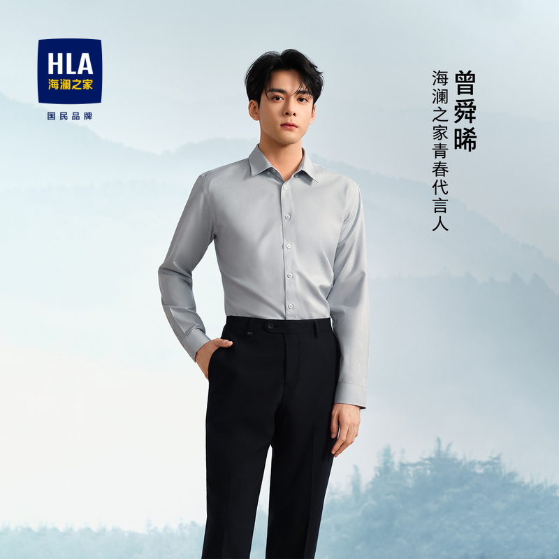 已选:HLA海澜之家免烫纯棉长袖衬衫24春夏新制扣领时尚格纹休闲衬衣男HNEAD1W039A