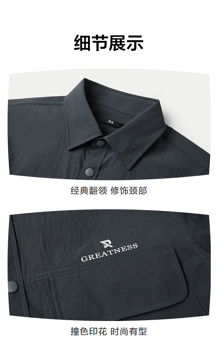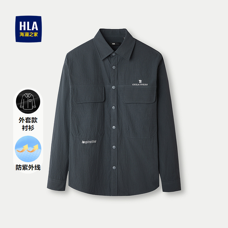 已选:HLA海澜之家撞色印花长袖衬衫25春夏新外套款色织翻领宽松衬衣男HNEAD2J062A