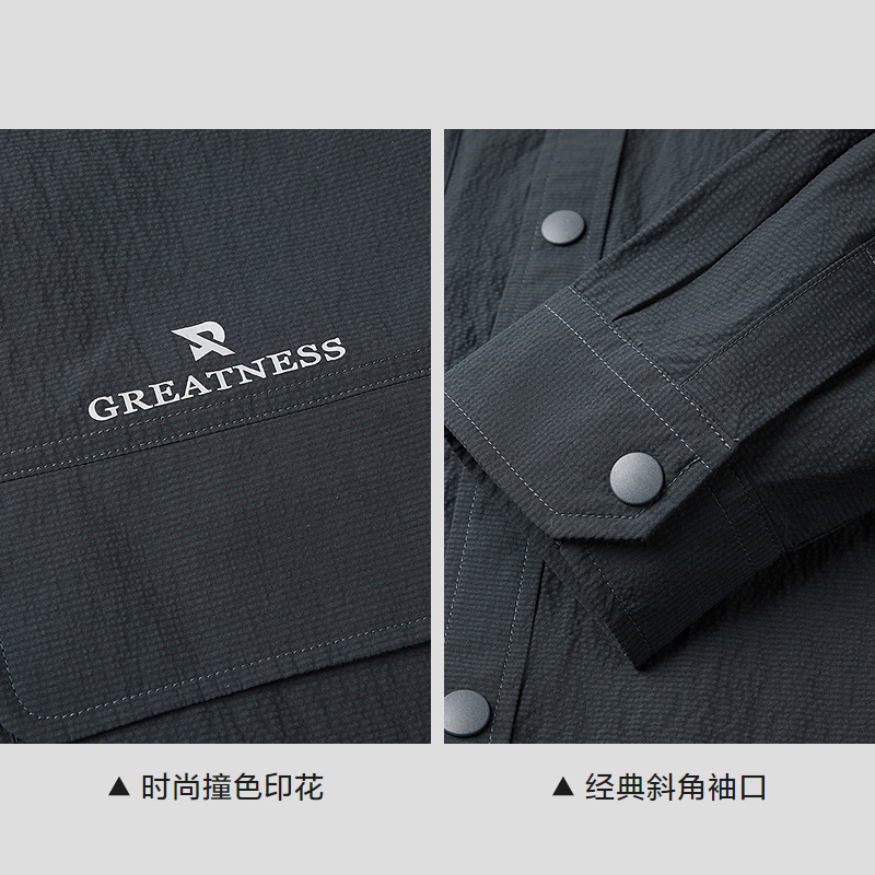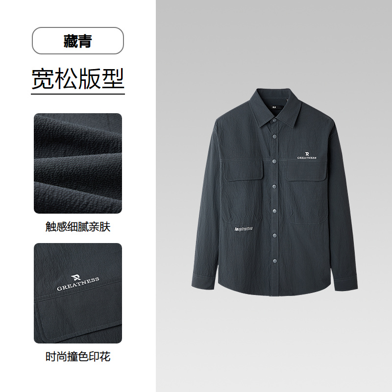 HLA海澜之家撞色印花长袖衬衫25春夏新外套款色织翻领宽松衬衣男HNEAD2J062A