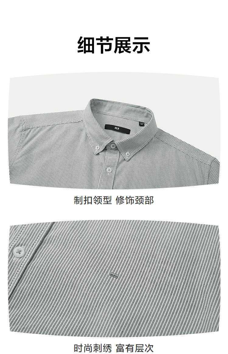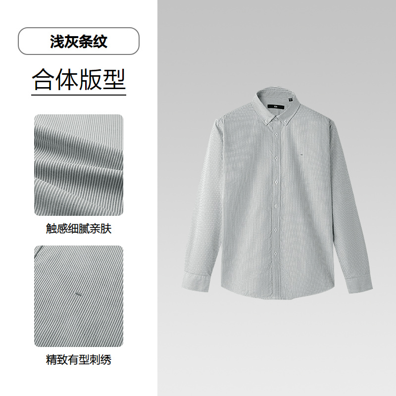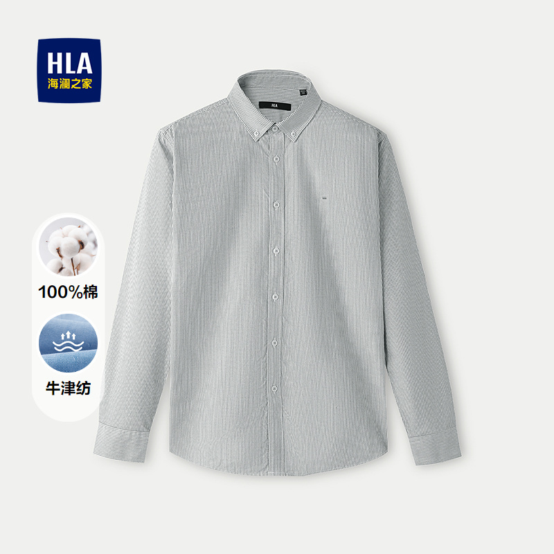 已选:HLA海澜之家牛津纺长袖衬衫25秋季新纯棉条纹撞色刺绣通勤衬衣男HNEAD3J095A