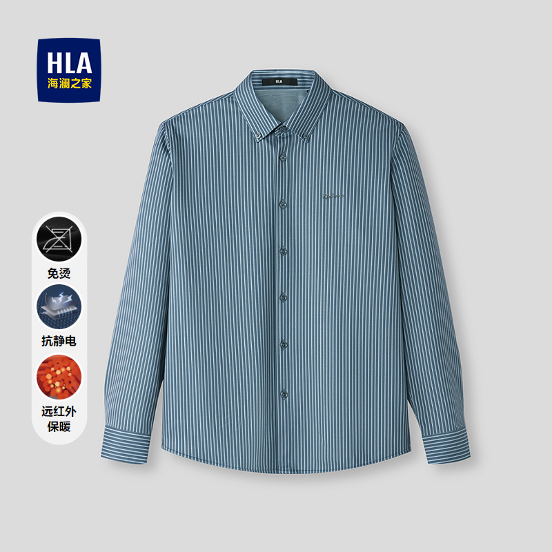 已选:HLA海澜之家保暖长袖衬衫25秋冬新款免烫远红外抗静电条纹衬衣男HNEAD4J232A