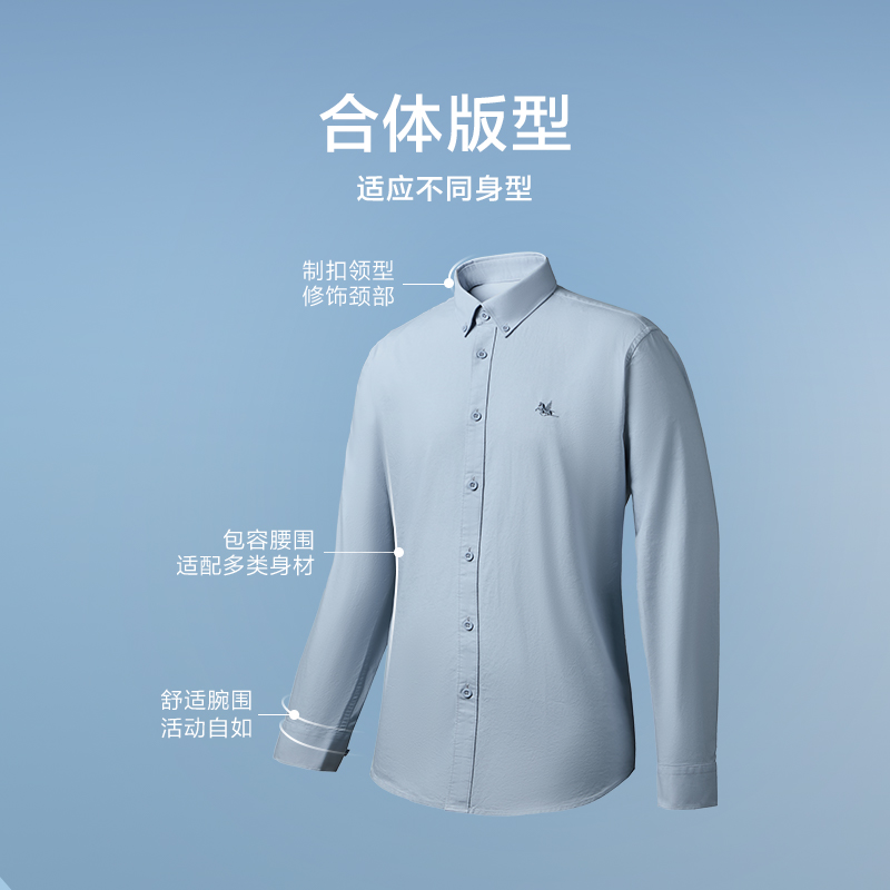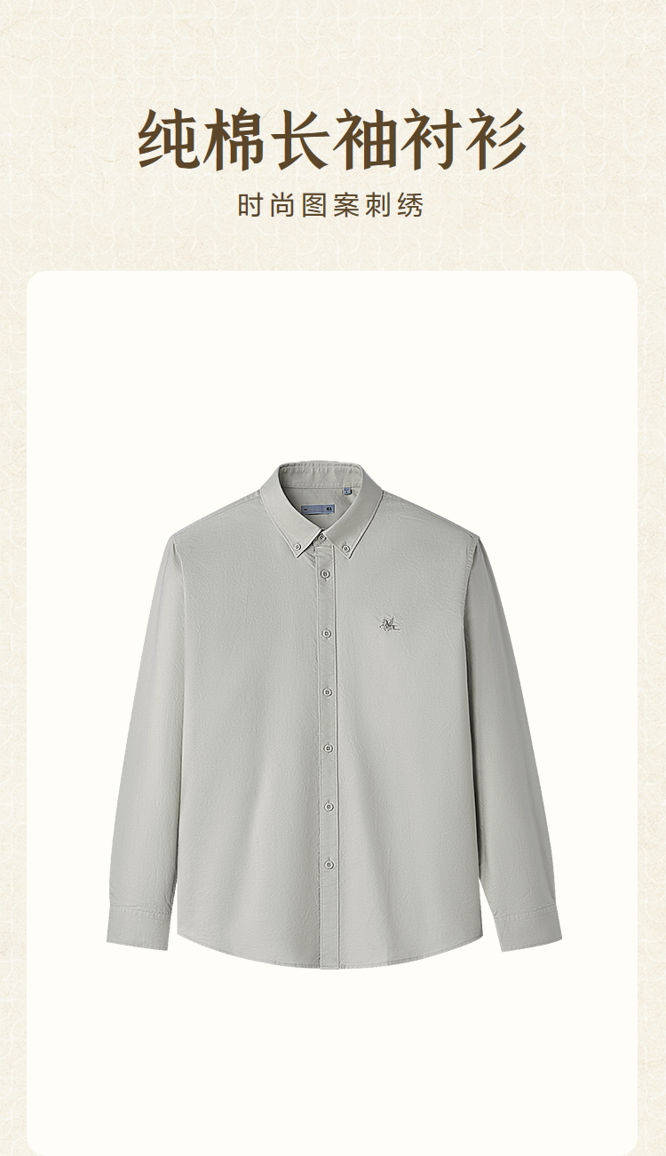 已选:HLA海澜之家马年贺岁系列长袖衬衫26春秋新制扣领刺绣纯棉衬衣男HNEAW1F005A