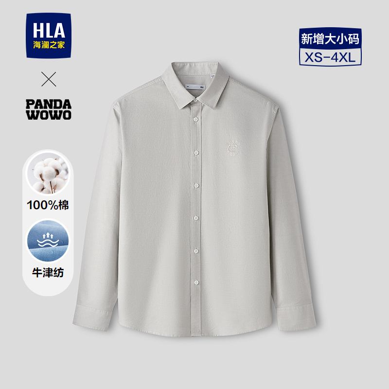 已选:HLA海澜之家panda wowo熊猫系列衬衫26春秋新纯棉牛津纺长袖男HNEAW1F008A
