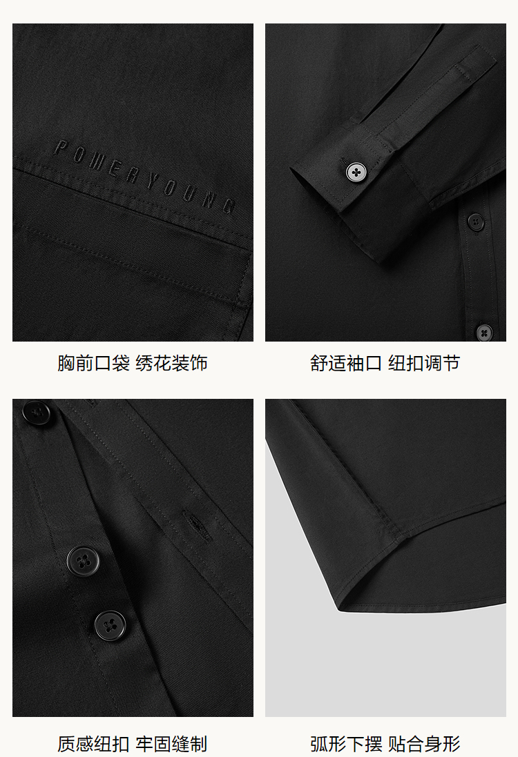 已选:HLA海澜之家POWER YOUNG系列长袖时尚衬衫26春夏新柔软黑衬衣男HNEAW1F027A